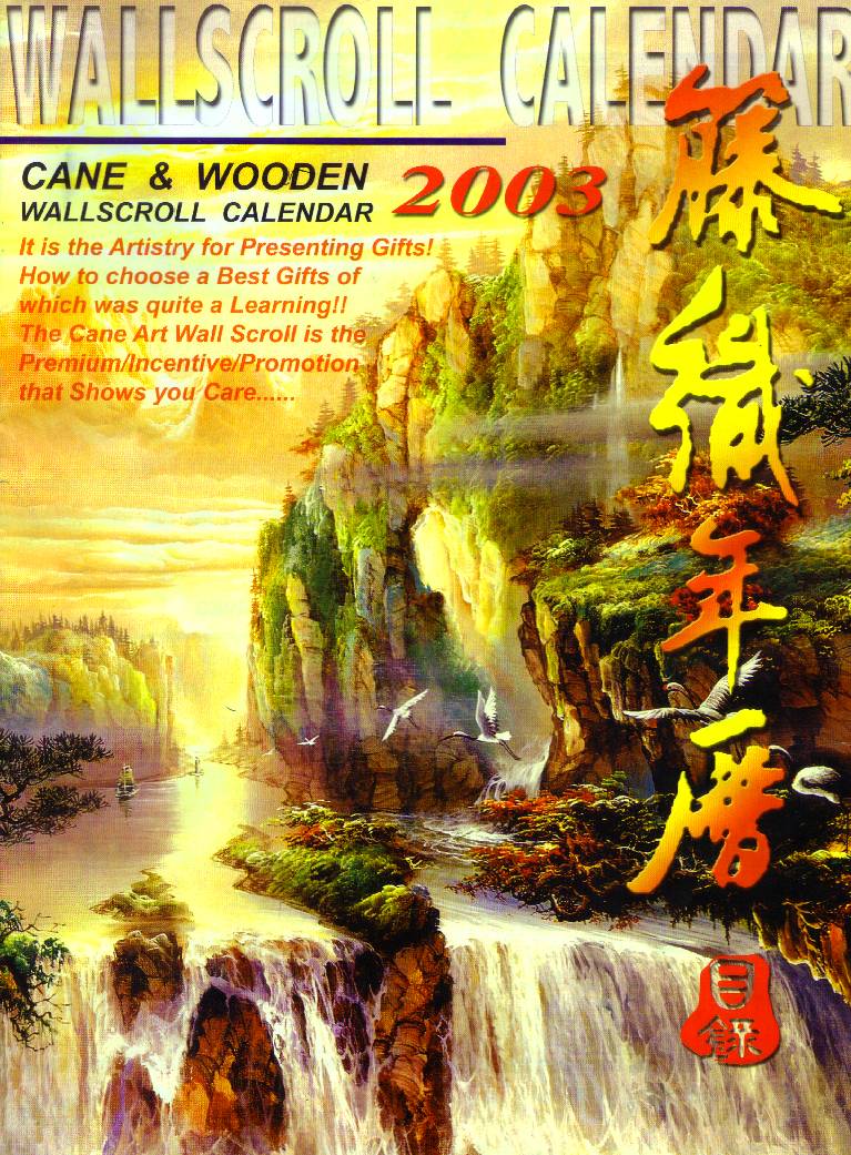 南海浩彩工藝品印刷有限公司 生產經營:仿藤、木片、絹布等內涵豐富具中國特色的掛曆產品 We provide you Cane and Wooden Wallscroll Calendar It is the Artistry for Presenting Gifts! How to choose a Best Gifts of which was quite a Learning!! The Cane Art Wall Scroll is the Premium/Incentive/Promotion that Shows you Care about your customers/clients!!!
